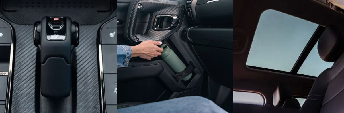 The panoramic sunroof fills the cabin with natural light, creating a bright and open space that brings the beauty of the outdoors inside.